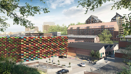 Wallenstam bygger färgglatt parkeringshus med Soltech Facade solceller i kreativt mönster