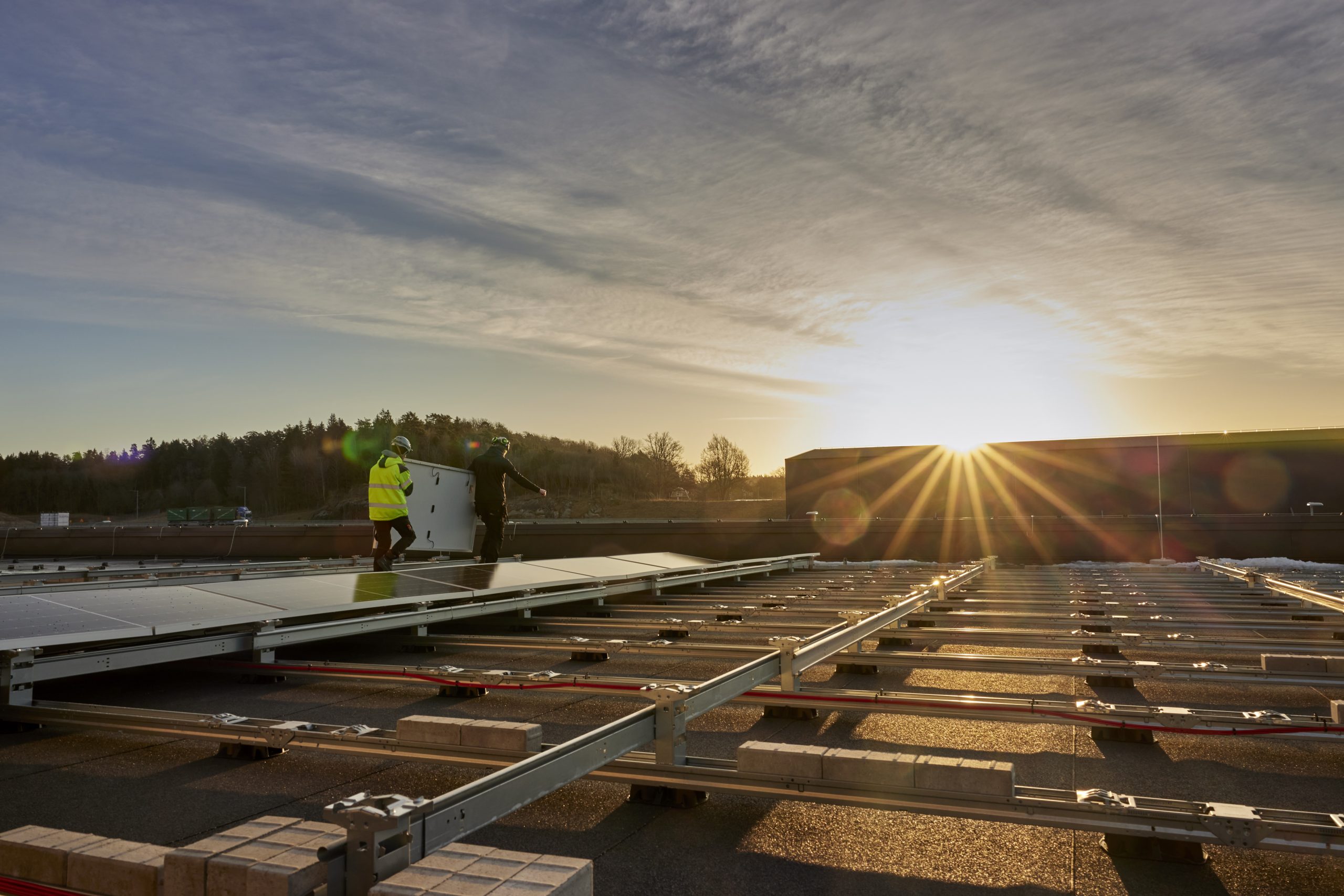 Vi har installerat en 2 MW solcellsanläggning för Nobia i Jönköping. Anläggningen, med över 3 600 paneler på fabrikens tak, förväntas producera 1,7 miljoner kWh grön el per år.